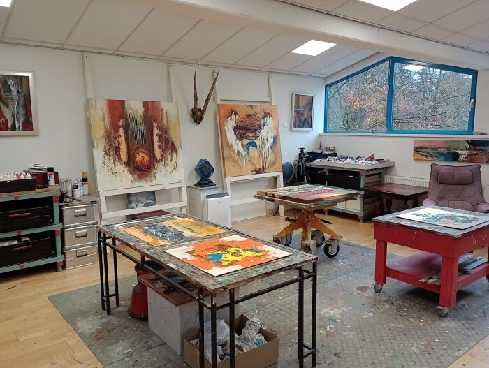 We troffen naast heel veel andere kunstwerken ook werk aan van Sjer Jacobs, niet allen zijn beelden, maar ook schilderijen. Op de bovenste etage was nog een atelier waar regelmatig gewerkt wordt door kunstenaarsechtpaar Vanhorck en Anita Duijf.