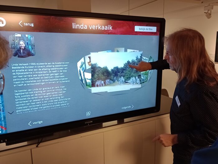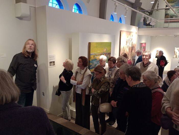 In een andere ruimte werd als eerbetoon werk vertoond van de nu 73 jarige kunstenares Toos van Holstein. Het was een heel diverse verzameling van aquarellen, acryl- en olieverfschilderijen, keramieken