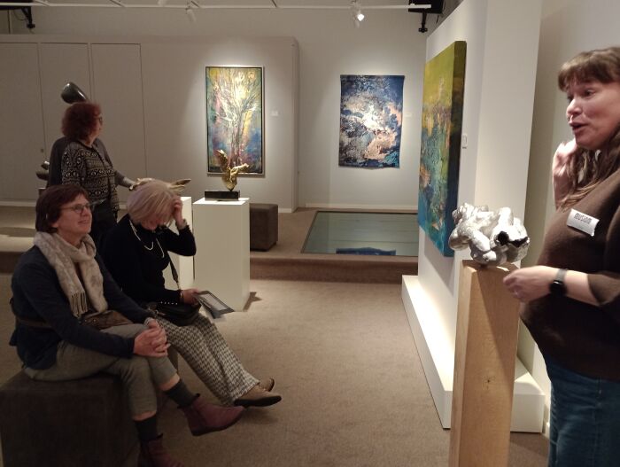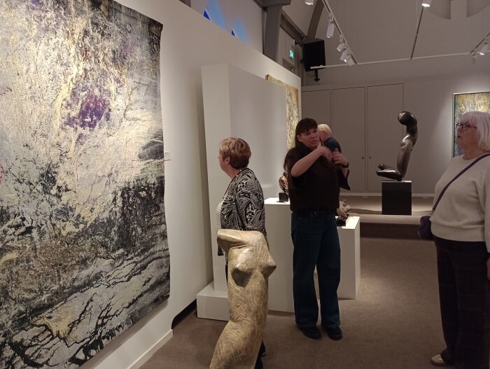 In de eerste ruimte werden we al verrast door de prachtige wandkleden van Marianne Benkö. Ook stonden er mooie bronzen en houten beelden van Marti de Greef.