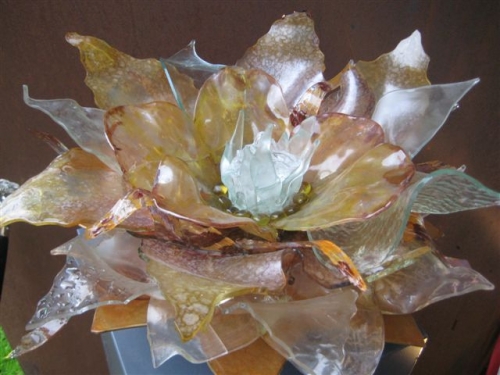 De beelden van Thérèse Schlösser en de glasvormen van Irene Terlingen kregen niet écht alle aandacht die zij verdienden, omdat zij vanwege de regen helaas niet buiten opgesteld konden worden. Om ongelukken te voorkomen moesten zij nu op veilige plaatsen, binnen in de vol bezette zaal getoond worden. Maar “Jazz in de tuin 2012 was alweer een mooi evenement ! “ zoals een van de bezoekers reageerde.