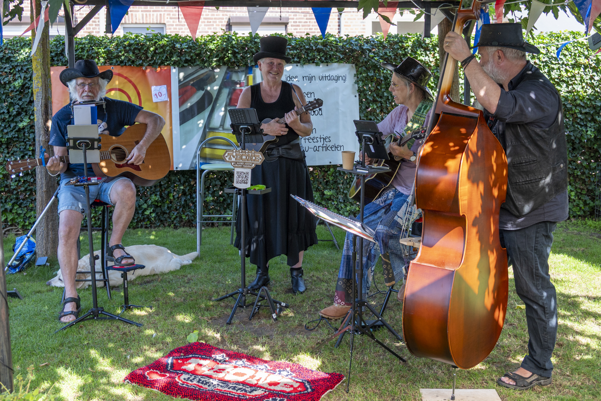 En last but not least: in Haelen was de T-Bone Stringband te beluisteren. Beslist een aanrader voor wie van mooie zang en western houdt! Zij hadden op zondagmiddag tegen het einde van de middag de vingers kapot en vol met blaren, maar nog steeds gaven ze de volle 100%.